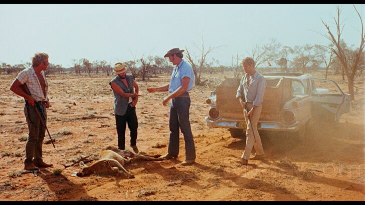Shortly after, a couple of Hynes' best buddies take Grant on a 'hunting trip' -- for a few hours, the men kill as many kangaroos as they can track down and then begin fighting amongst themselves. However, while they are ‘having fun’, the seriously inebriated Grant collapses, allowing Doc Tydon (Donald Pleasence,