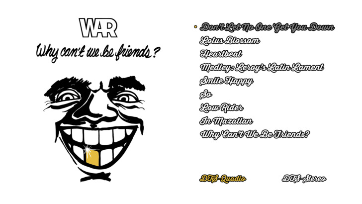 Why Can't We Be Friends? is the seventh studio album by American band War, released on June 16, 1975, by United Artists Records. Two singles from the album were released: the title track backed with "In Mazatlan", and "Low Rider" backed with "So". Both A-sides were nominated for the Grammy Awards of 1976.