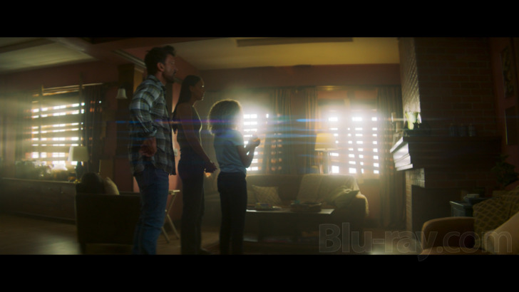 expertly applied face paint that covers the face of Lucy's well-armed and bloodthirsty neighbor. Wood grain is plainly visible on set elements such as