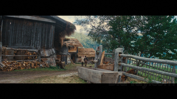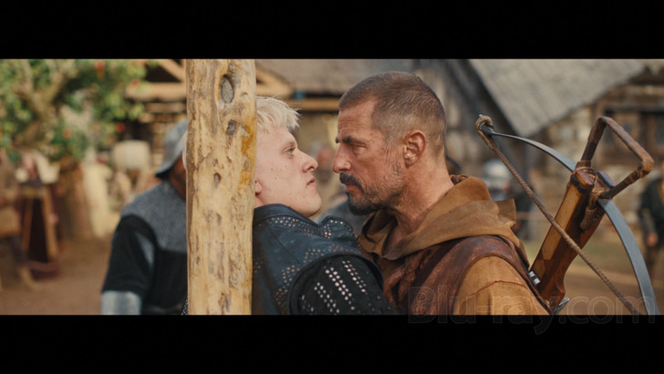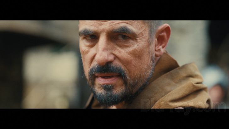 The 5.1 DTS-HD MA mix isn't always the powerhouse listening experience one expects it to be, but it remains functional, with clear dialogue exchanges throughout, securing accents and language. Scoring maintains sharp instrumentation and dramatic support, periodically flowing into the surrounds. Atmospherics are unusual, as some scenes, including a first act thunderstorm, offer a circular sense of weather, while a mid-movie ship battle on raging seas is quite mild. Community bustle is acceptable, and sound effects are distinct. Low-end is passable with weather changes and army movement.