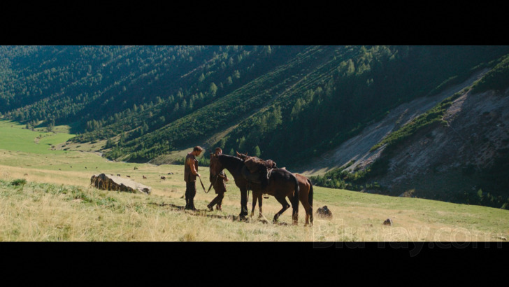 The AVC encoded image presentation for "William Tell" does deal with the feature's slightly overcooked color grading, which doesn't always look natural. Inherent issues aside, hues appear stable throughout the viewing experience, handling big displays of greenery as the adventure heads into the open world. Stony and woodsy village locations register with cooler hues, while the brightness of Bertha's royal dresses and red hair breaks through as intended. Skin tones are mostly natural. Detail captures the texture of skin particulars on the cast, identifying age and weariness, also doing well with displays of wigs and facial hair. Castle interiors are dimensional, detailing plenty of decorative additions, and village life remains deep, examining community movement and mountainside backgrounds. Delineation is acceptable. Compression shows some signs of struggle, with mild banding periodic.