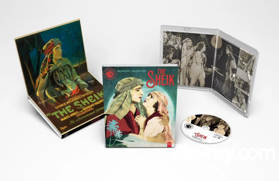 The Sheik is presented with collectible packaging featuring a foldout image of the film's theatrical poster and an interior spread with key movie moments.