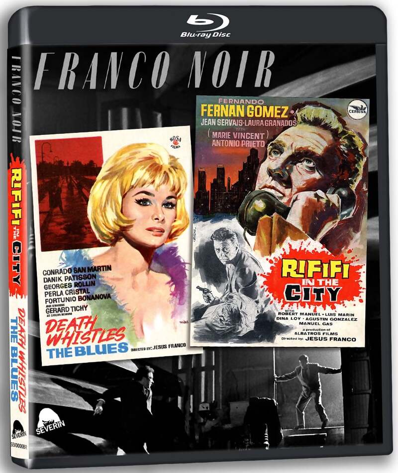 Label description: Following his international breakthrough with THE AWFUL DR. ORLOFF, director Jess Franco next delivered a startling pair of crime-thrillers that pistol-whipped European notions of film noir while lighting the fuse on Uncle Jess' own insane aesthetic. Set in New Orleans and based on a novel by the authors of VERTIGO, DEATH WHISTLES THE BLUES is a hard-boiled tale of betrayal, violence and revenge featuring smoky jazz compositions by Franco himself. Jean Servais of RIFIFI fame stars in RIFIFI IN THE CITY, a nihilistic trip through a pulp underworld of thugs, snitches, nightclub dames and black-gloved giallo-style murders. Both films – which led an impressed Orson Welles to hire Franco as his assistant on CHIMES AT MIDNIGHT – now feature HD scans from the original negatives for the first time ever.