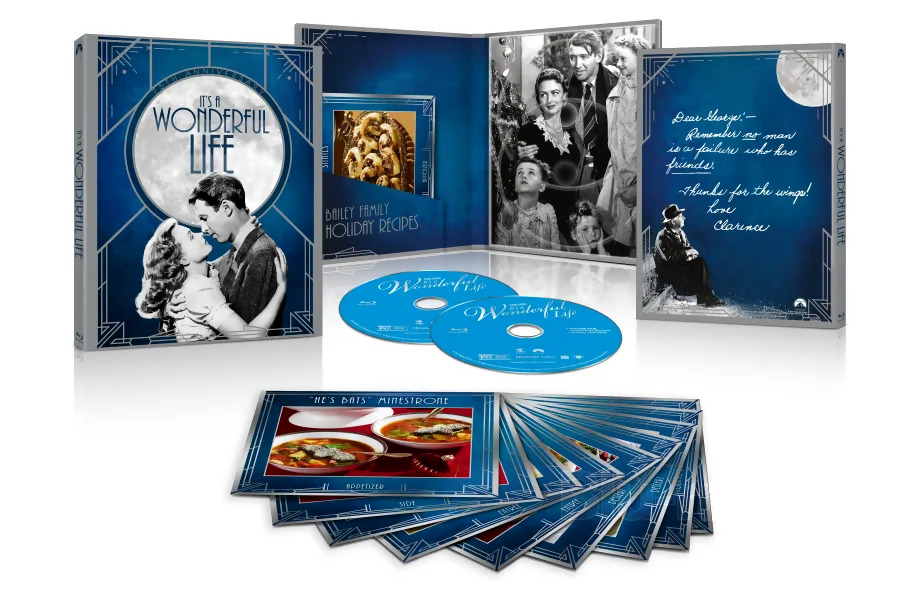 The upcoming release features a beautifully colorized version of the film in high definition as well as the original, digitally remastered black-and-white movie in high definition, and access to a digital copy of the film. Perfect for gift-giving, the set also includes 10 collectible recipe cards from Insight Editions' It's a Wonderful Life: The Official Bailey Family Cookbook with cuisine inspired by the film. Additionally, the set includes over 45 minutes of previously released bonus content exploring the meticulous process of preserving and revitalizing this iconic masterpiece, a look at the movie's extraordinary sound, music, cinematography and visual effects, and vintage footage from the film's wrap party.