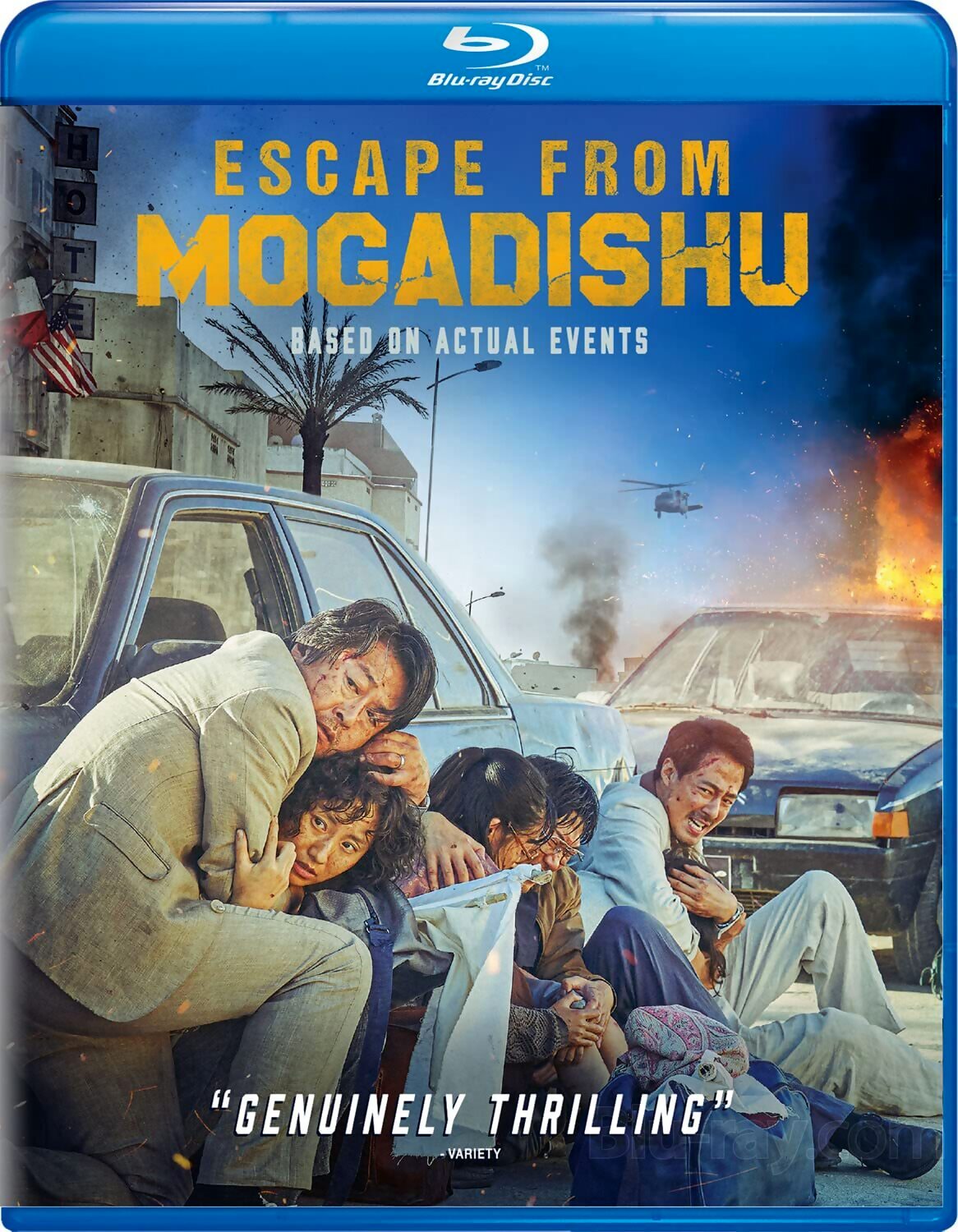 Label synopsis: Dramatically constructed based on actual events: when civil war explodes in 1991 between rebel factions and Somali government forces under dictator Mohamed Siad Barre, rival North and South Korean diplomats are trapped in the capital city, surrounded on all sides by what would emerge as some of the deadliest fighting of the conflict. With no aid from either Korean government—and no means of communicating with the outside world—the diplomats' only shot at survival may require uniting with bitter adversaries to escape.