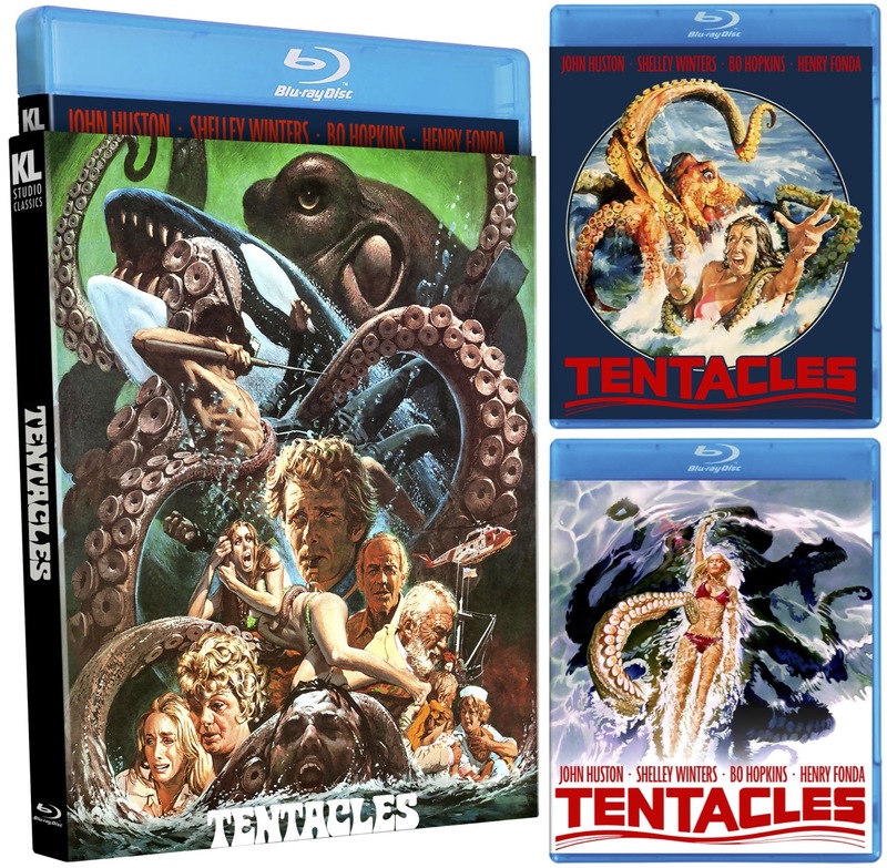 Tentacles (1977), starring John Huston, Shelley Winters, Bo Hopkins, Henry Fonda, and Delia Boccardo. The release will be available for purchase on April 12.