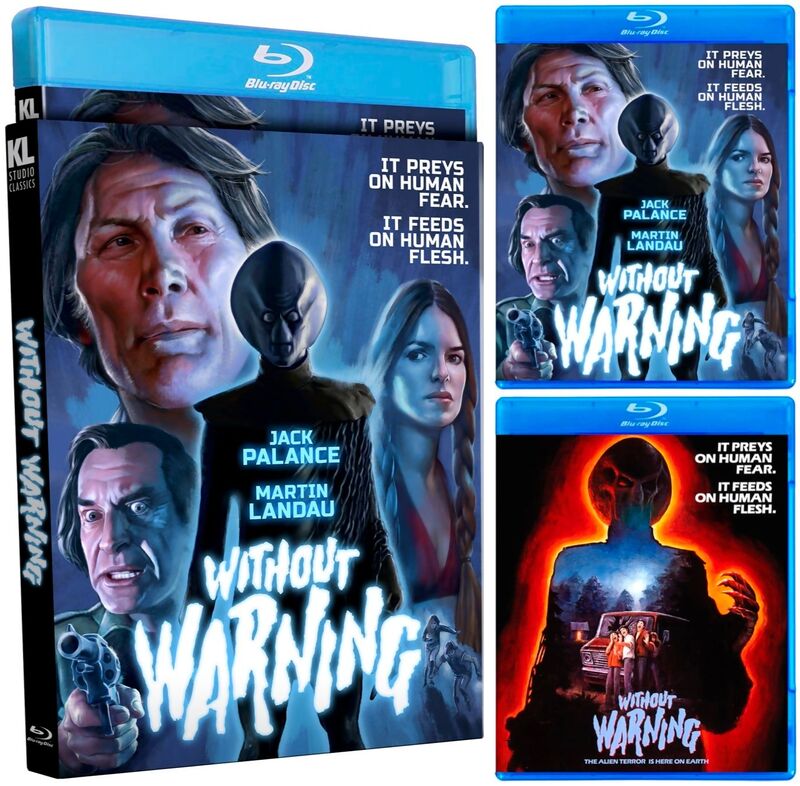 Without Warning (1980), starring Jack Palance, Martin Landau, Cameron Mitchell, Kevin Peter Hall, and Neville Brand. The release will be available for purchase on Mat 24.