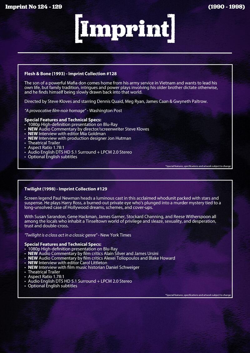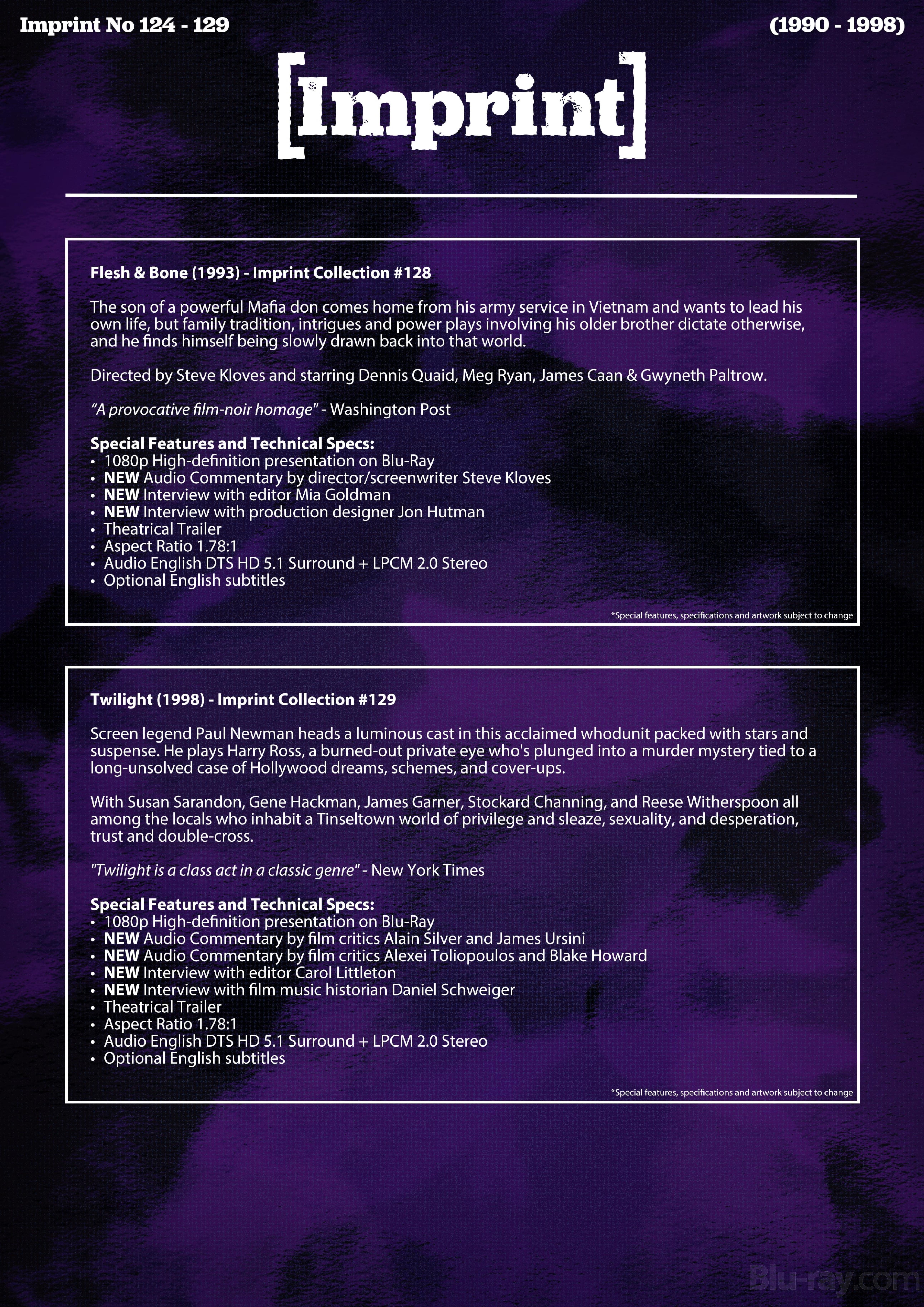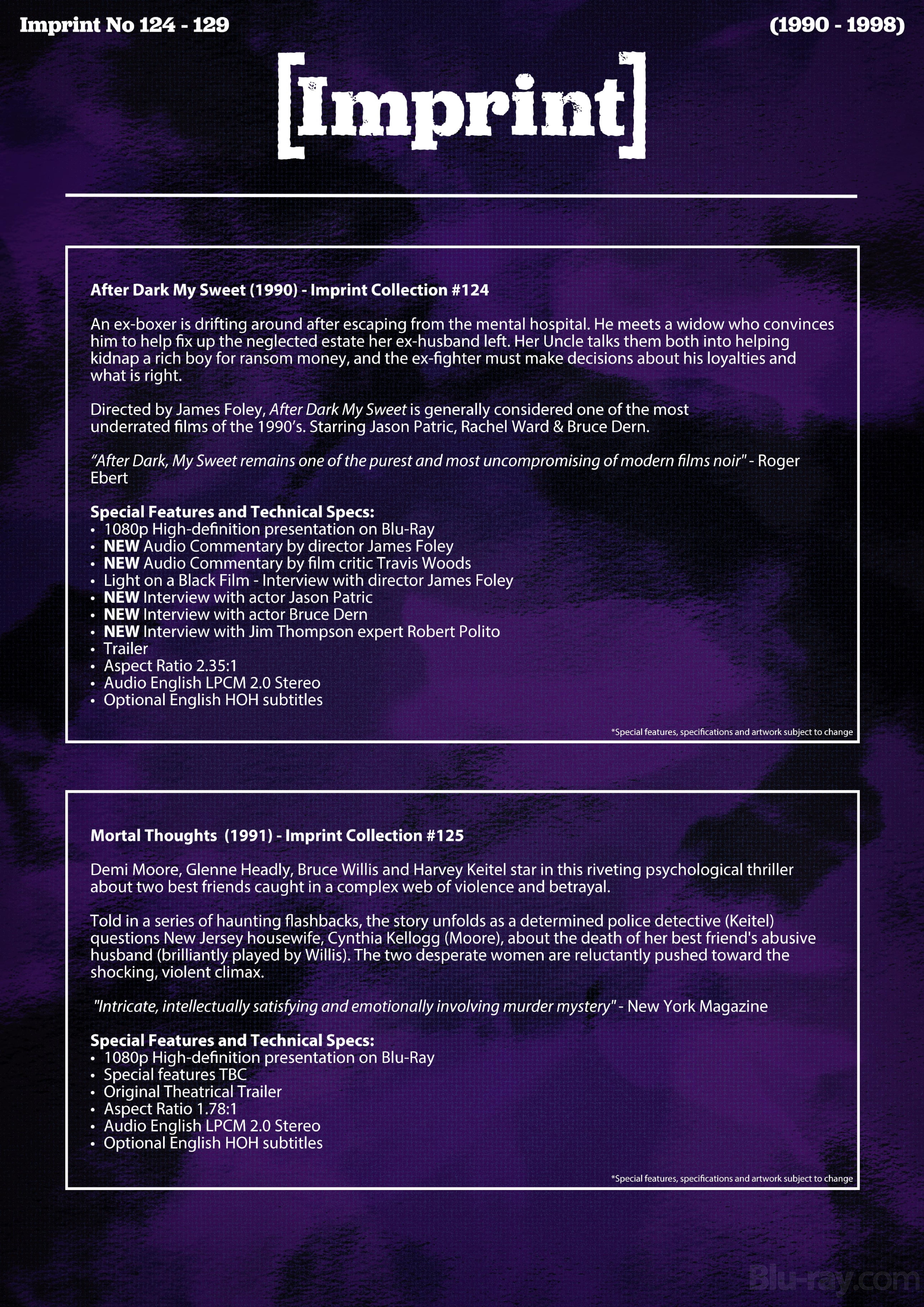 Includes After Dark My Sweet (1990), Rush (1991), One False Move (1992), Mortal Thoughts (1992), Flesh & Bone (1993), and Twilight (1998).