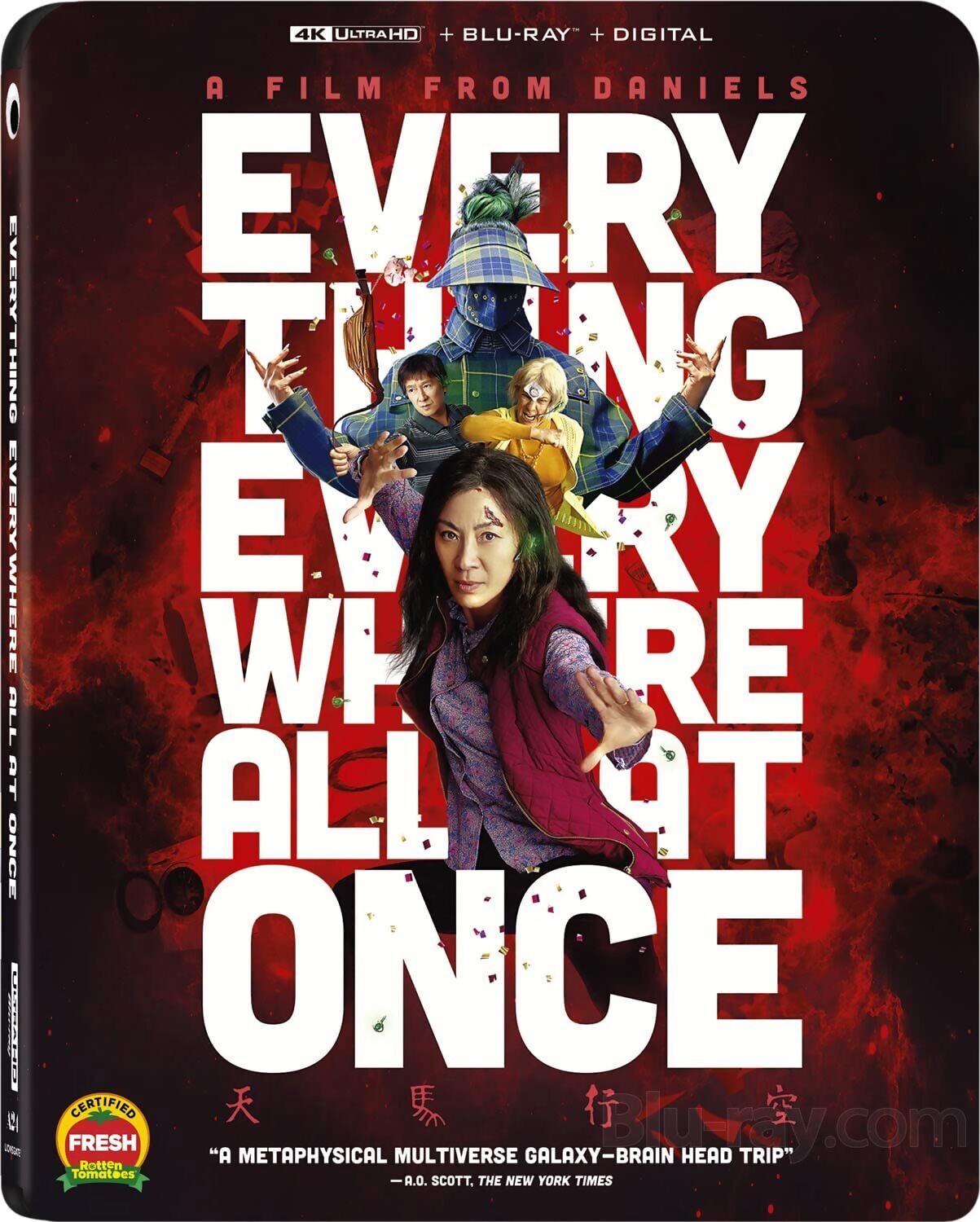 Lionsgate Home Entertainment has officially announced and detailed its upcoming 4K Blu-ray and Blu-ray releases of Dan Kwan and Daniel Scheinert's Everything Everywhere All at Once (2022), starring Michelle Yeoh, Jonathan Ke Quan, Stephanie Hsu, James Hong, and Jamie Lee Curtis. The two releases will be available for purchase on July 5.