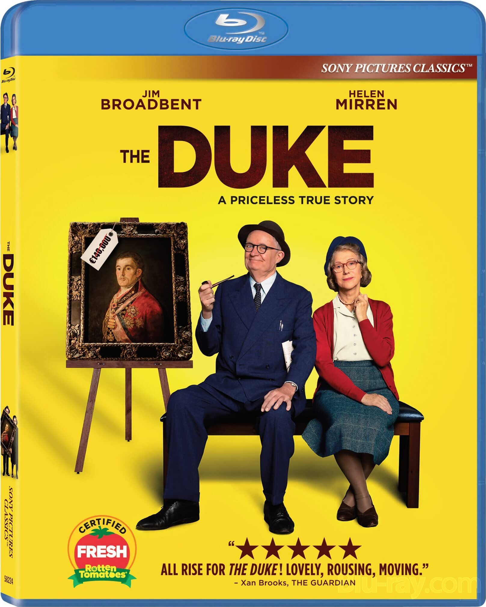 Description: The Duke is set in 1961 when Kempton Bunton (Jim Broadbent), a 60-year old taxi driver, stole Goya's portrait of the Duke of Wellington from the National Gallery in London. It was the first (and remains the only) theft in the Gallery's history. Kempton sent ransom notes saying that he would return the painting on condition that the government agreed to provide television for free to the elderly. What happened next became the stuff of legend. Only 50 years later did the full story emerge – a startling revelation of how a good man set out to change the world and in so doing saved his son (Fionn Whitehead) and his marriage to Dorothy Bunton (Helen Mirren).