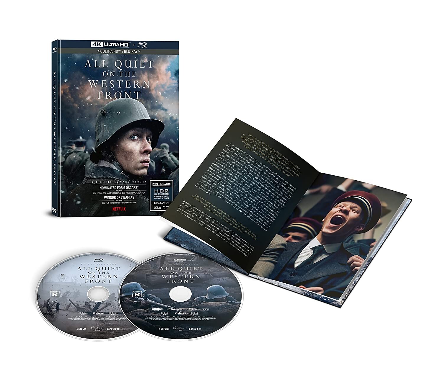 24-page booklet featuring " Sharing the German Perspective" - A Conversation With Edward Berger and "A Machine Of Death Unlike Any Experienced Before" - An Interview With Historian And Professor Daniel Schönpflug