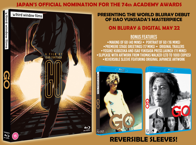 British distributors Third Window Films have detailed their upcoming Blu-ray release of Isao Yukisada's Go (2001), starring Yôsuke Kubozuka, Ko Shibasaki, Shinobu Ôtake, Tsutomu Yamazaki, and Hirofumi Arai. The release will be available for purchase on May 22.