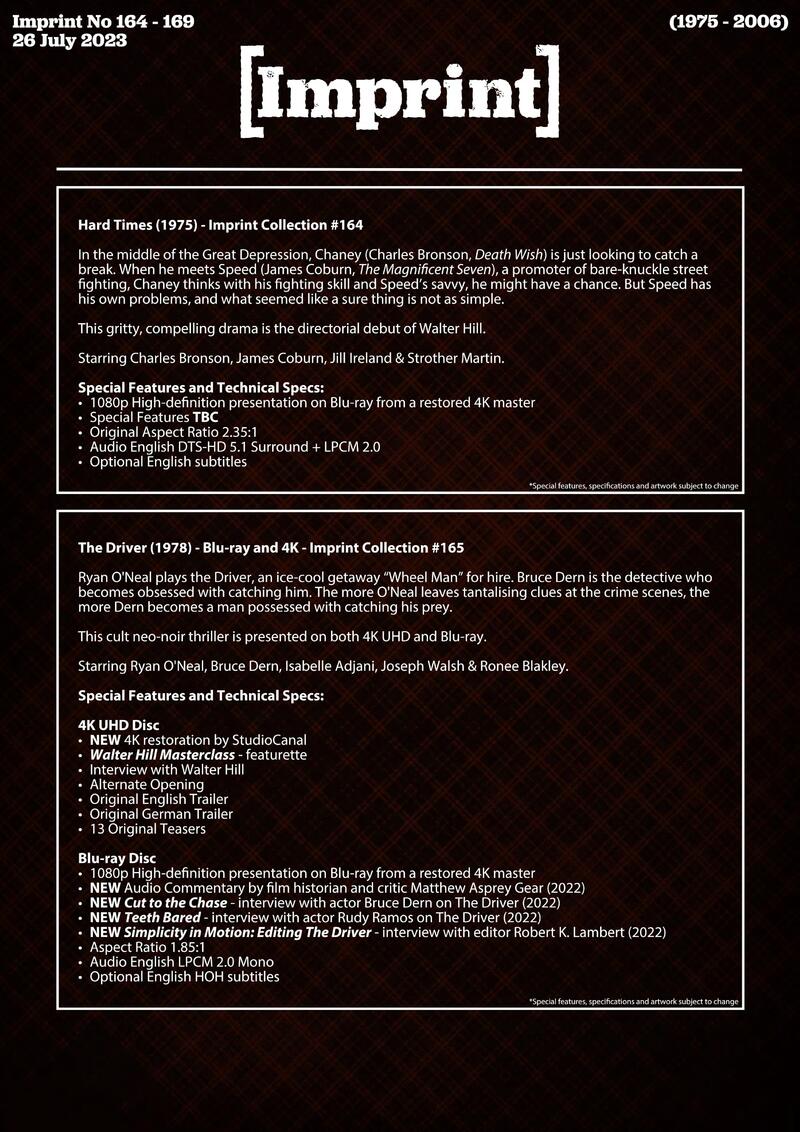 *Please note that the earlier announcement for Directed by Walter Hill has been updated and includes brand new information. (The Driver will be available on 4K Blu-ray as well).
