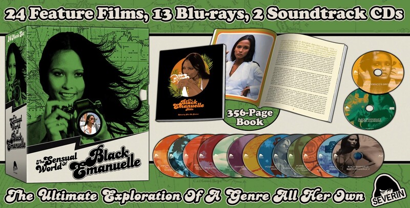 She was the pleasure-seeking photojournalist forever embodied by the exquisite Indonesian actress Laura Gemser, most frequently in collaboration with writer/director Joe D'Amato who would uncover an increasingly lurid world of sex cults, snuff films, cannibal jungles, women's prisons, white slavers, depraved convents, and beyond to become the premier feminist icon in genre history. This landmark collection produced by award-winning writer/director Kier-La Janisse now brings together 21 BLACK EMANUELLE films, 2 adjacent titles starring EuroCult heroine Ajita Wilson, and the D'Amato documentary INFERNO ROSSO, most newly scanned, restored, and on Blu-ray for the first time in America. The journey continues with 2 soundtrack CDs curated exclusively for this release encompassing music by Nico Fidenco and more, the lavishly illustrated 356-page THE BLACK EMANUELLE BIBLE designed by Luke Insect and featuring new writings by noted film scholars and historians as well as Laura Gemser's in-depth 1996 Nocturno Magazine interview, and over 40 hours of Special Features that include alternate versions, audio commentaries, video essays, a documentary on Gemser's husband/co-star Gabriele Tinti, the '80s Gemser workout video Looking Good, and much more.