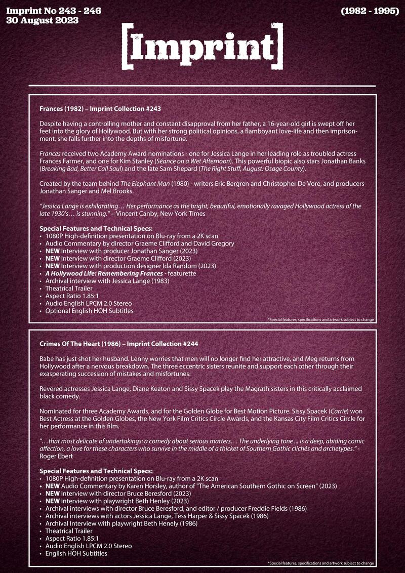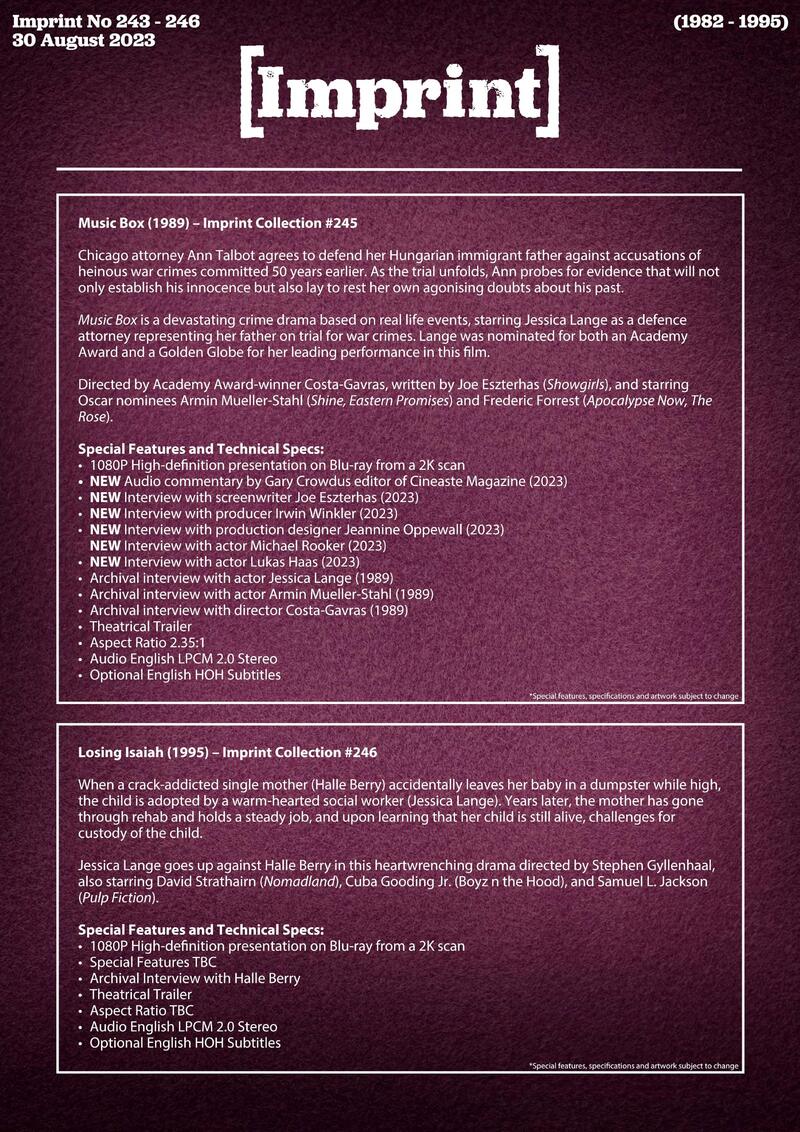 All titles will be made available for pre-order at imprintfilms.com.au and Amazon.Australia
