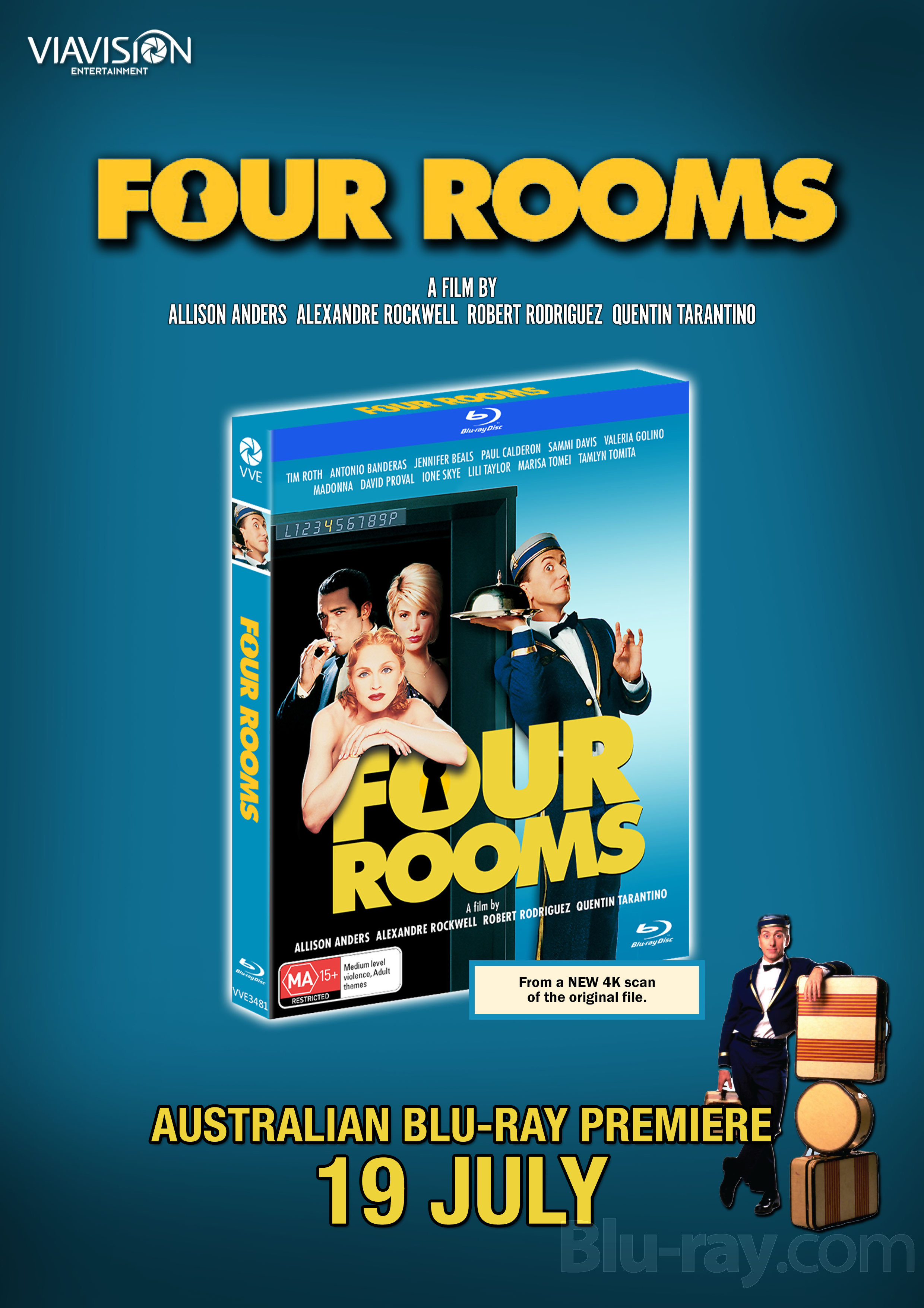 Four Rooms (1995), starring Tim Roth, Amanda De Cadenet, David Proval, Antonio Banderas, and Jennifer Beals. The release will be available for purchase on July 5.