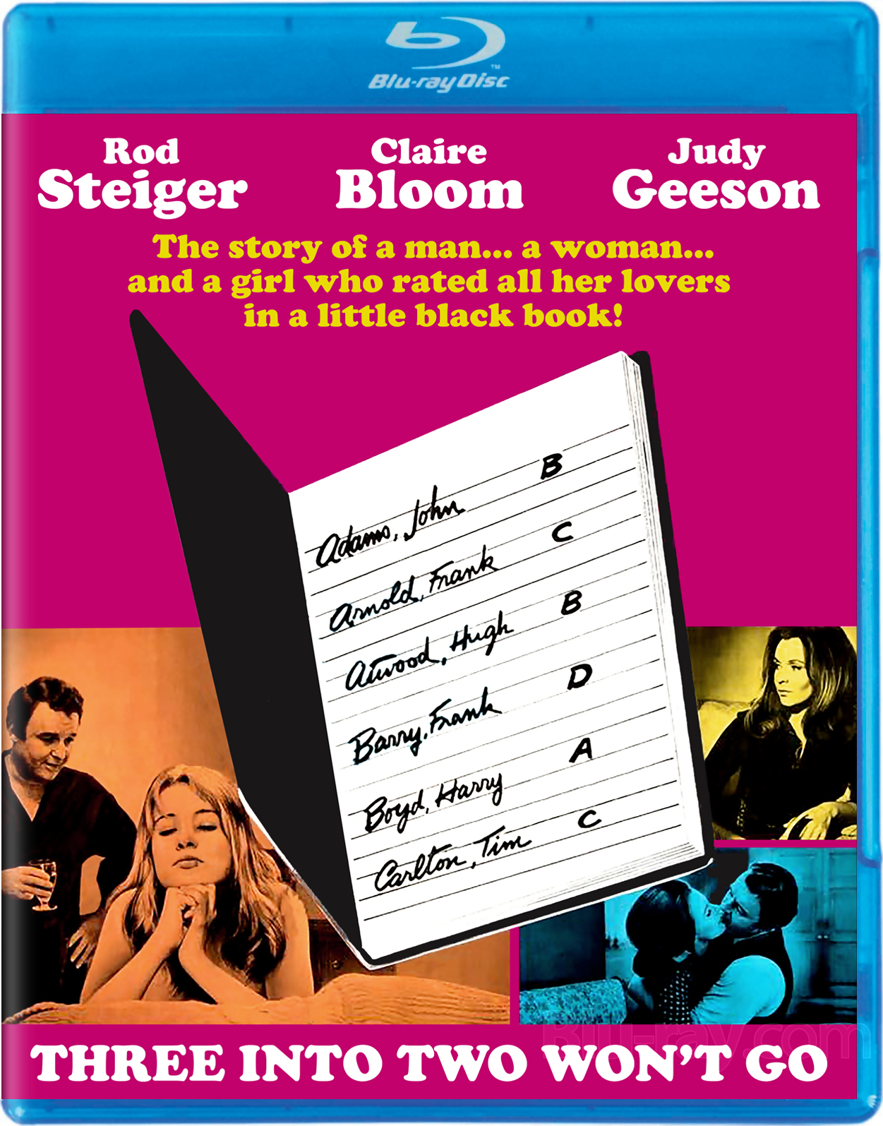 Three Into Two Won't Go (1969), starring Rod Steiger, Paul Rogers, Claire Bloom, Judy Geeson, Peggy Ashcroft, and Lynn Farleigh. The release will arrive on the market on August 22.
