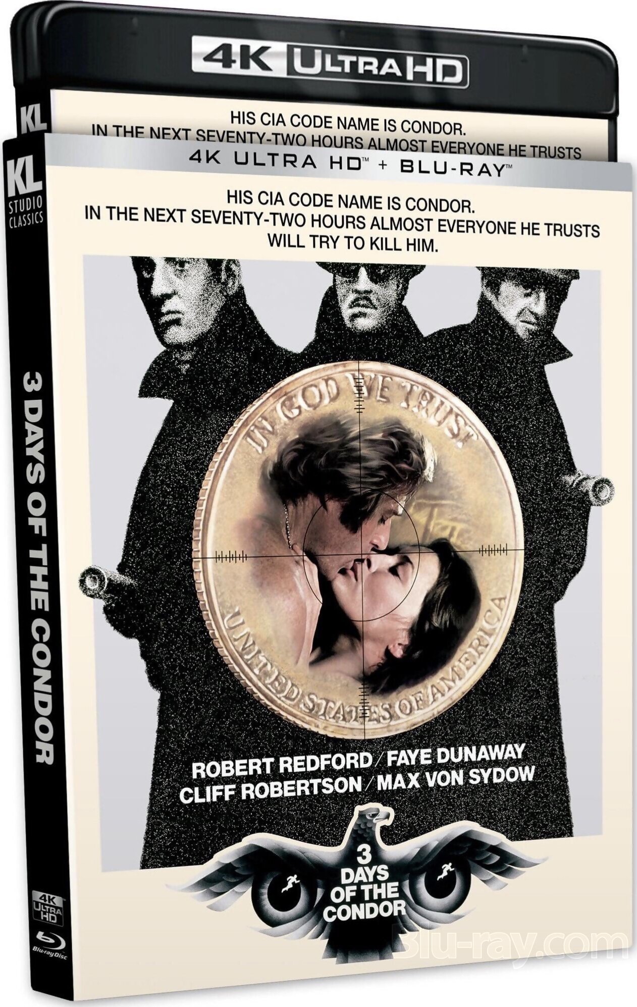 3 Days of the Condor (1975), starring Robert Redford, Faye Dunaway, Cliff Robertson, Max von Sydow, and John Houseman. The two releases are scheduled to arrive on the market on August 29.
