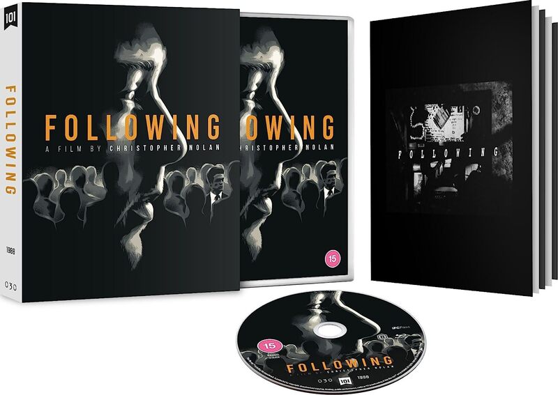Limited Edition Booklet: What's in the box? Lifting the lid on Christopher Nolan's debut Following by James Mottram and Lingering Shadows: A look at Christopher Nolan's early neo-noir, Following by Andrew Graves.