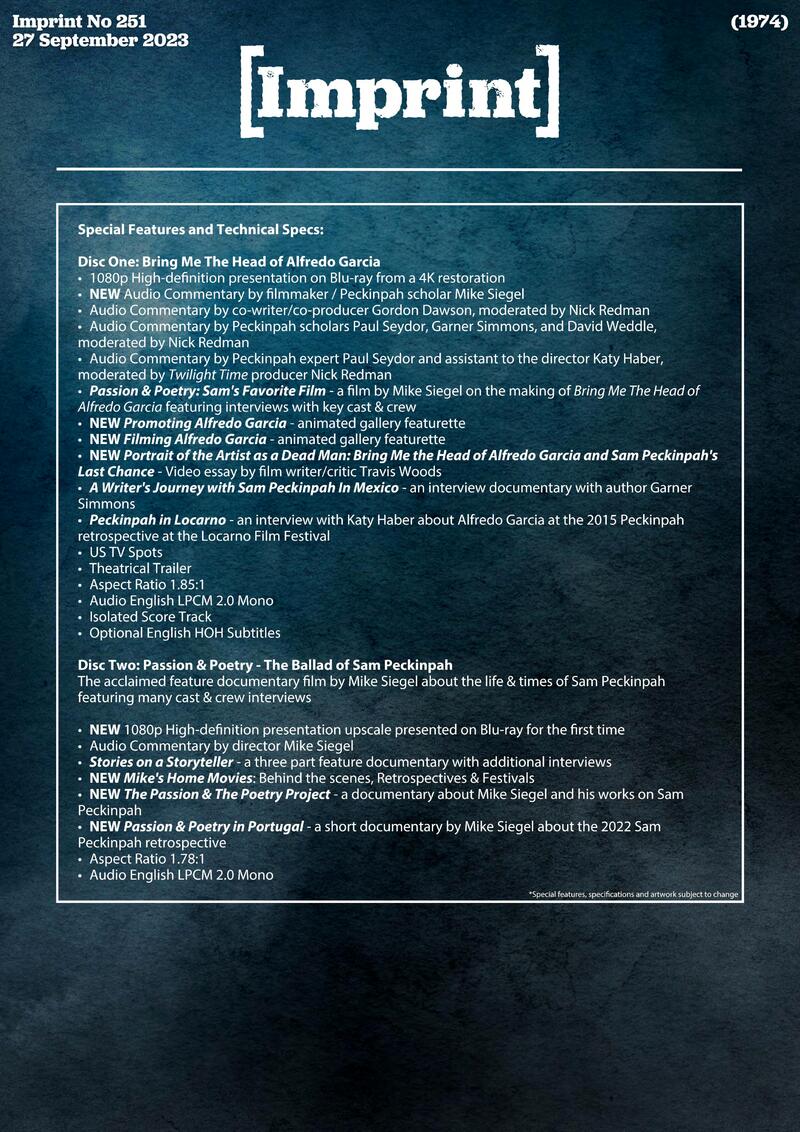 Bring Me the Head of Alfredo Garcia (1974), and