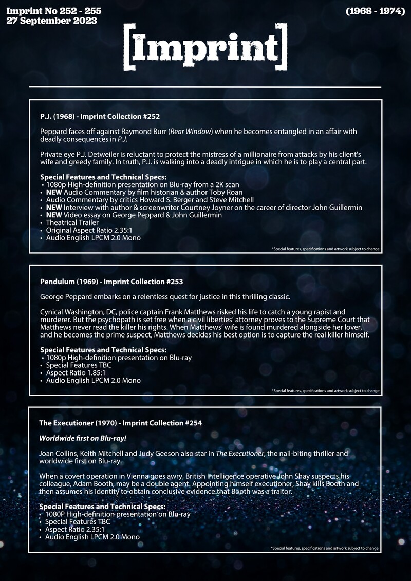 Australian label Imprint Films has announced its September batch of 4K Blu-ray and Blu-ray releases. They are: