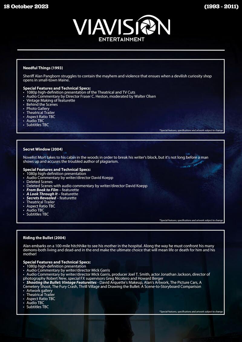 Stephen King Collection. The three releases are scheduled to arrive on the market on October 18.