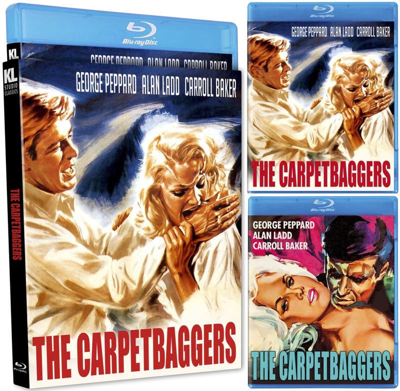 The Carpetbaggers (1964), starring George Peppard, Carroll Baker, Alan Ladd, Robert Cummings, and Martha Hyer. The release is scheduled to arrive on the market on November 28.