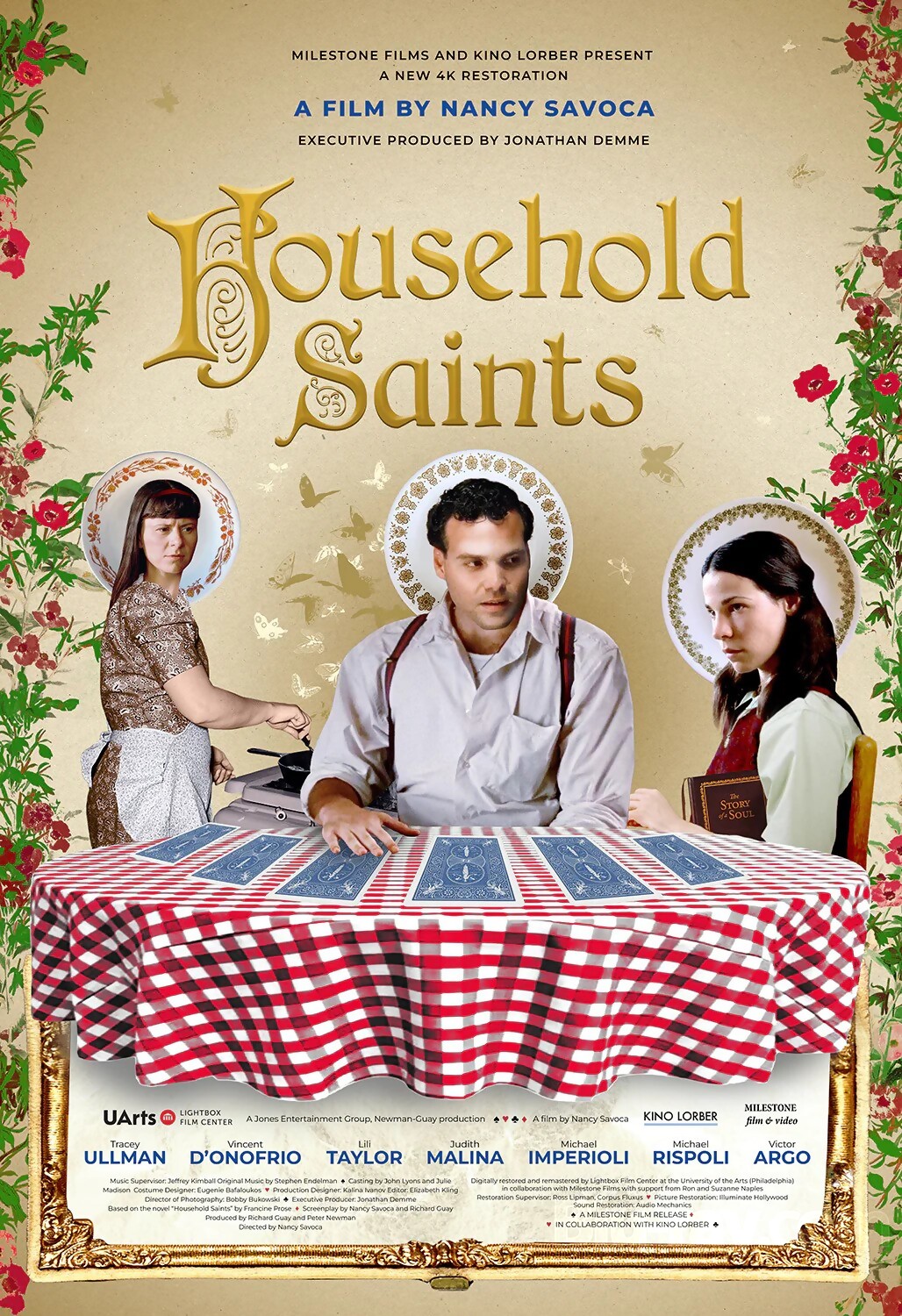 Description: Based on Francine Prose's fifth novel, Nancy Savoca's chronicle of a spirited Italian-American New York family perfectly balances humor, tragedy, and pathos. Vincent D'Onofrio's Joseph Santangelo is a butcher with a wicked sense of humor who "wins" his wife Catherine (a stellar Tracey Ullman) in a pinochle game. Over the protests of his mother (Judith Malina) who talks to ghosts and makes deals with saints, Joseph marries Catherine. When the old lady dies, her spirit is channeled into her granddaughter Teresa who overtakes the film with her yearning to serve God. Perfectly embodying a modern-day Bernadette, Lili Taylor imbues Teresa with a mix of dedicated innocence and naïveté. Executive produced by Jonathan Demme, with notable performances from Michael Imperioli, Michael Rispoli and Victor Argo, Household Saints represents a unique voice in 1990s independent filmmaking.