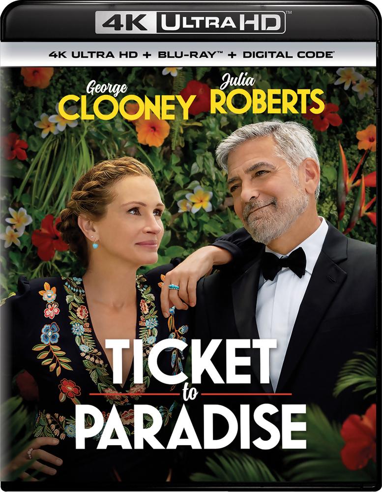 Universal Pictures Home Entertainment is preparing a 4K Blu-ray release of Ol Parker's Ticket to Paradise (2022), starring George Clooney, Julia Roberts, Kaitlyn Dever, Billie Lourd, and Maxime Bouttier. The release is scheduled to arrive on the market on February 13.