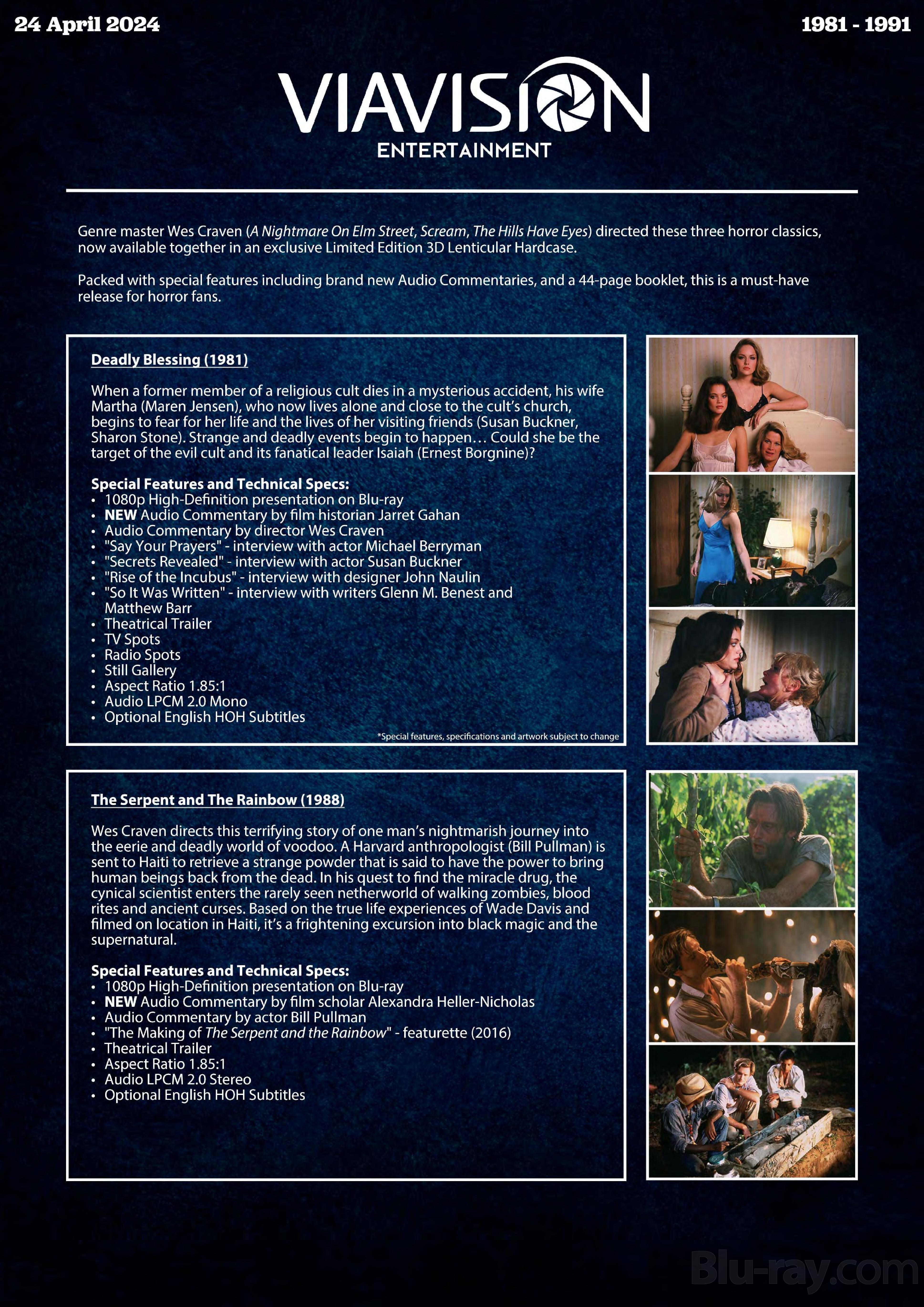 Exact technical specs and supplemental features to be included on the upcoming releases are detailed in the individual press sheets below.