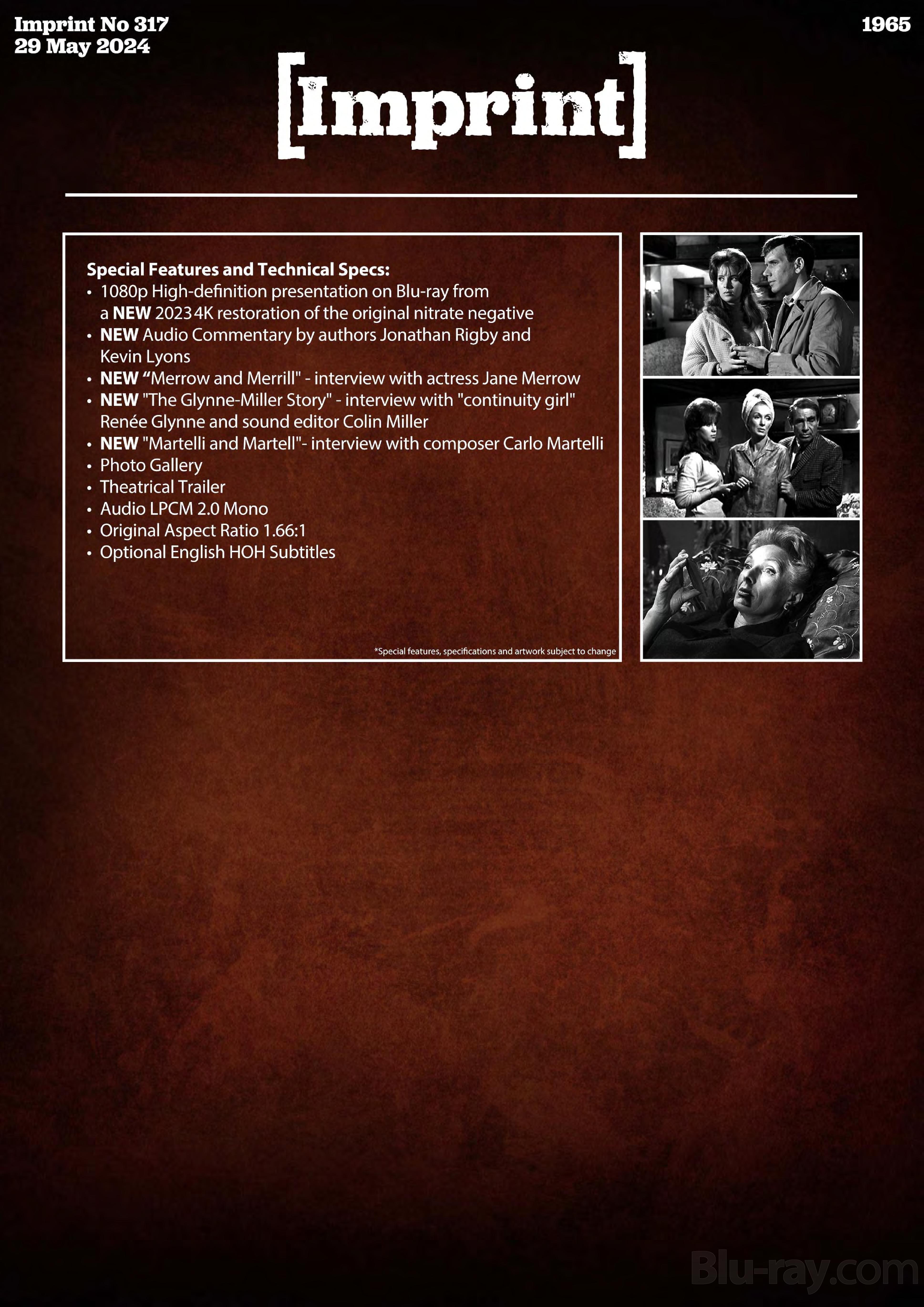 Imprint Films has announced its May batch of Blu-ray releases. They are: