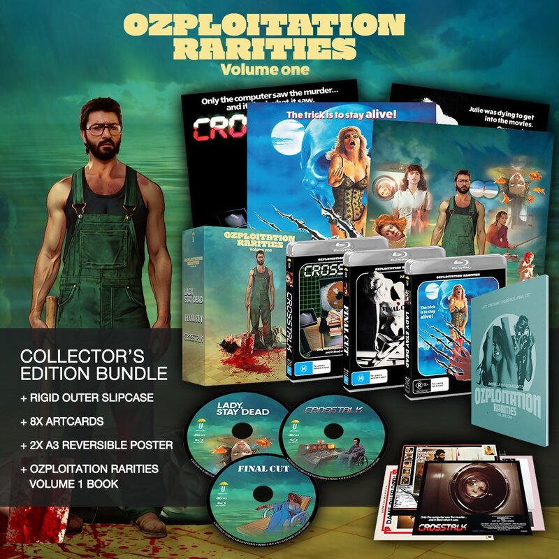 Featuring the sun-soaked terror LADY STAY DEAD, the seductive schlock FINAL CUT (AKA DEATH GAMES), and the Hitchcockian sci-fi CROSSTALK, this irresistible set also includes NEW outer and disc art and three cases with original artwork. The Collector's Edition also includes a rigid case, two reversible posters, artcards, and a 48-page book with written content from Paul Harris, John Hipwell, David Stratton, and Stephen Vagg.