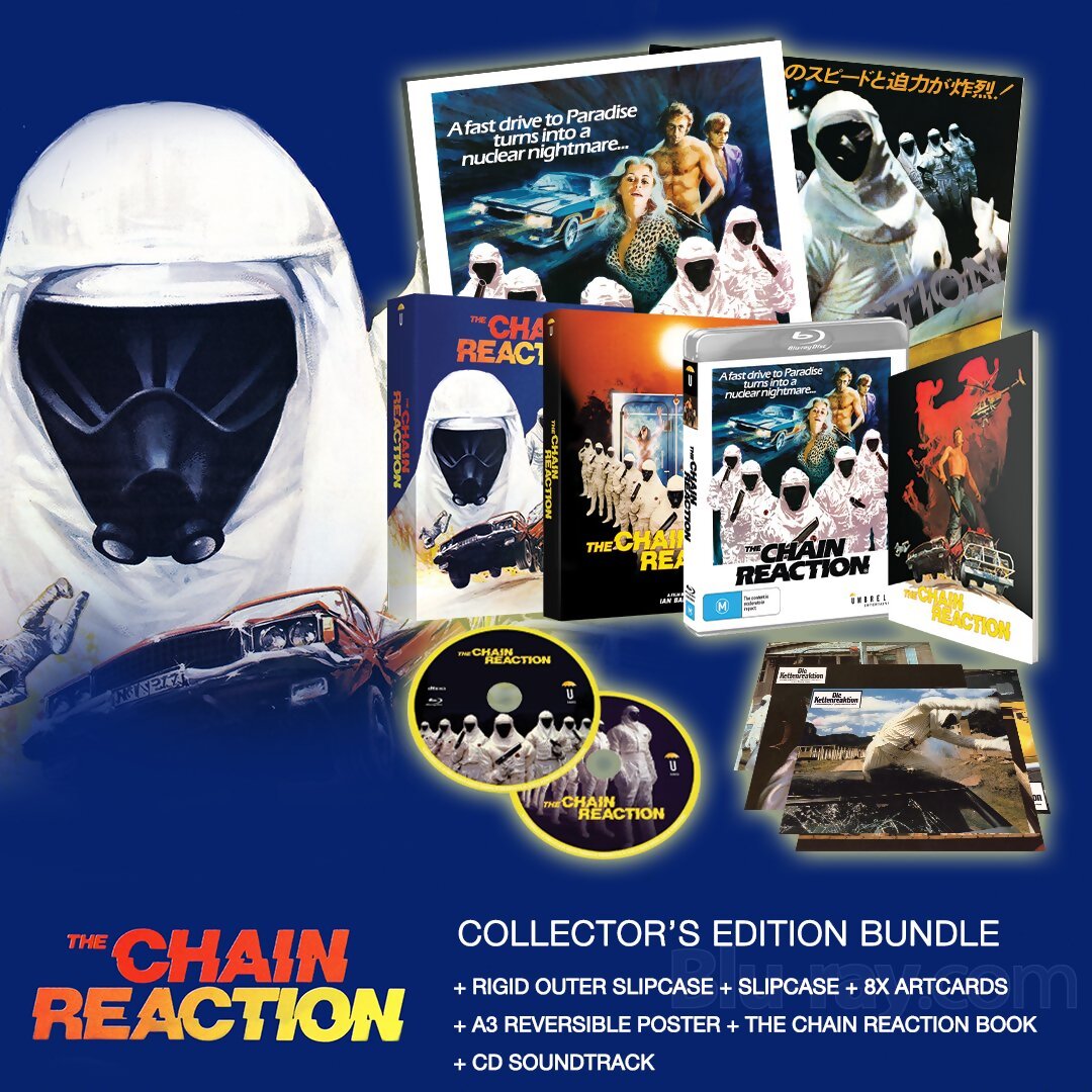 Boasting high-octane car chases and spectacular stunts staged by George Miller, the director of Mad Max, and appearances from the stars of that film (Steve Bisley, Hugh Keays-Byrne and Mel Gibson), The Chain Reaction is a slick, futuristic action thriller that hurls you into the nightmarish world of terror and nuclear holocaust.