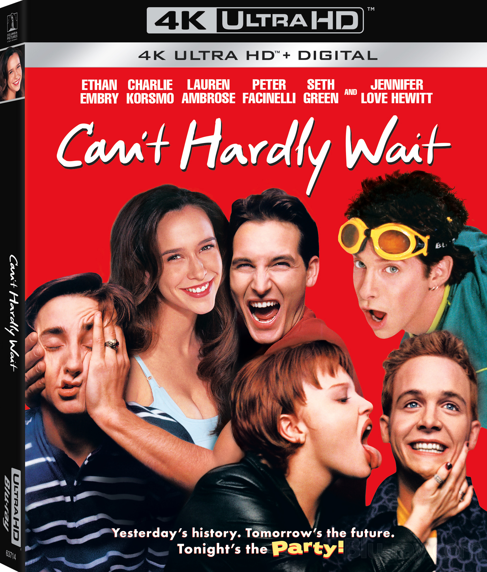 Can't Hardly Wait (1998), starring Jennifer Love Hewitt, Ethan Embry, Charlie Korsmo, Lauren Ambrose, and Peter Facinelli. The release is scheduled to arrive on the market on August 20.
