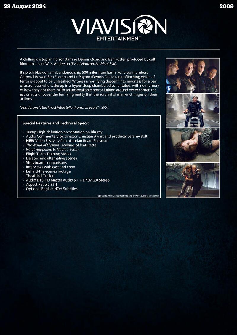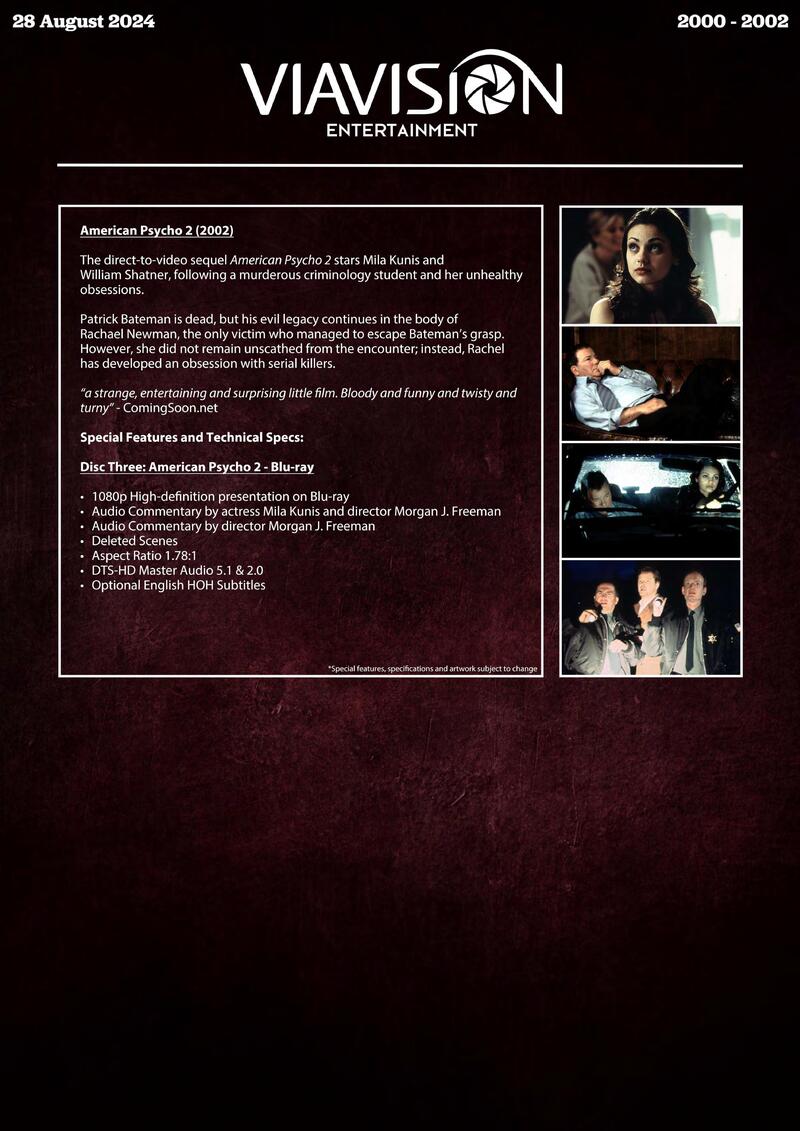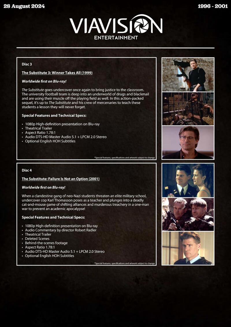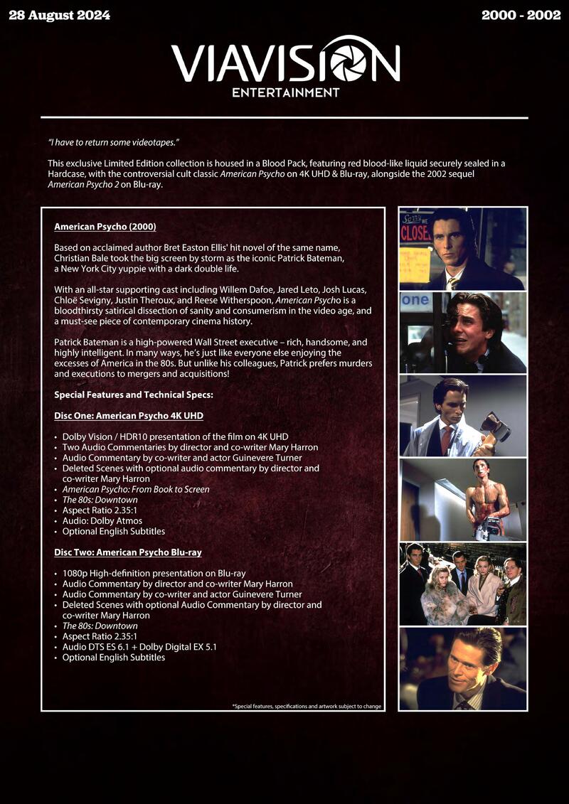 Australian label Via Vision Entertainment has announced its August batch of 4K Blu-ray and Blu-ray releases. They are: