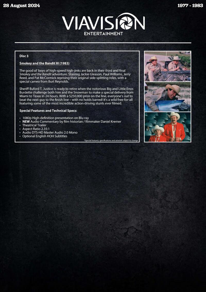 Exact technical specs and supplemental features to be included on the upcoming releases are detailed in the individual press sheets below.
