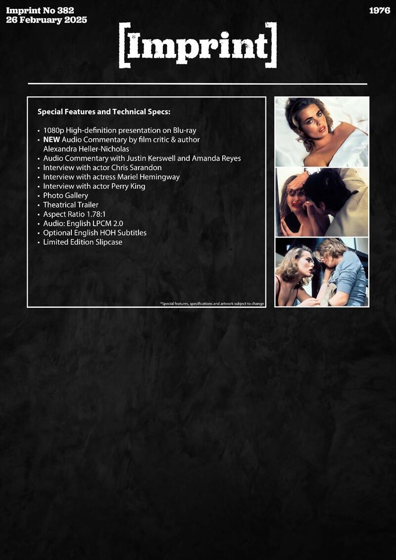 Beloved supermodel and granddaughter of writer Ernest Hemingway, Margaux Hemingway, stars in this controversial revenge thriller. Includes a brand NEW Audio Commentary by film critic & author Alexandra Heller-Nicholas and archival features.