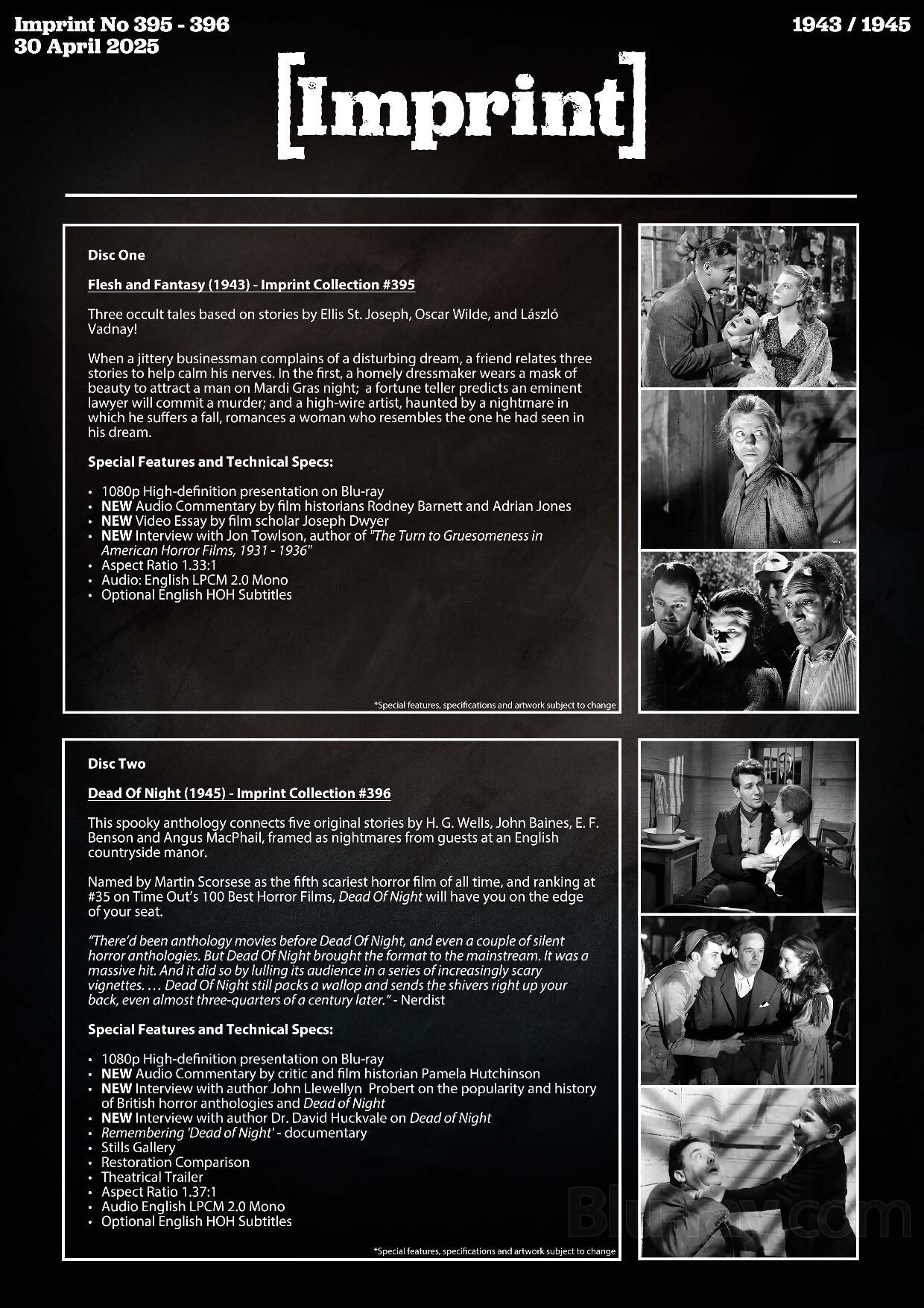 Two classic 40's anthology films, with a supernatural twist! With stories by acclaimed writers such as Oscar Wilde and H.G. Wells, and performances from Hollywood stars including Edward G. Robinson, Barbara Stanwyck, Betty Field, and Michael Redgrave, this is must-see classic horror at its finest.