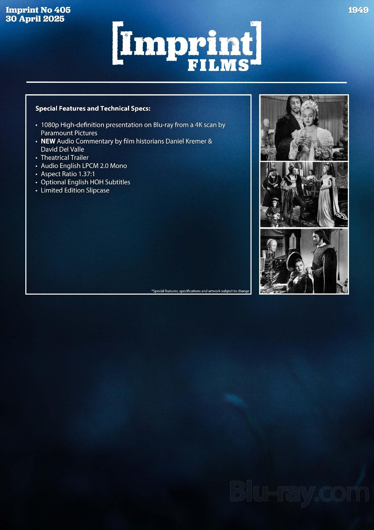 Worldwide first on Blu-ray from a 4K scan! Critically acclaimed director Mitchell Leisen (Hold Back The Dawn) brought this historical romantic drama to life, a passionate tale set during the Italian Renaissance.