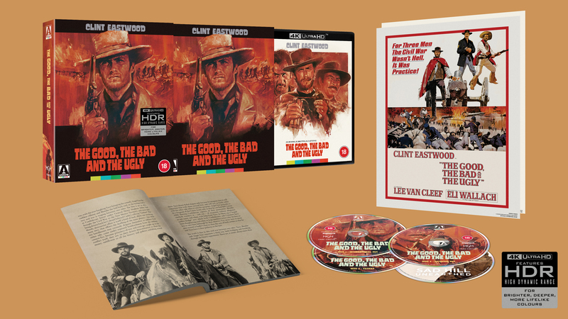Mythic, cynical and endlessly entertaining, The Good, The Bad and The Ugly brings Leone's grand sense of dramatic scale to its apotheosis. Arrow Films is proud to present this landmark Western in the most comprehensive edition ever assembled, featuring both cuts of the film meticulously restored in glorious 4K, and a wealth of new and archival bonus materials.