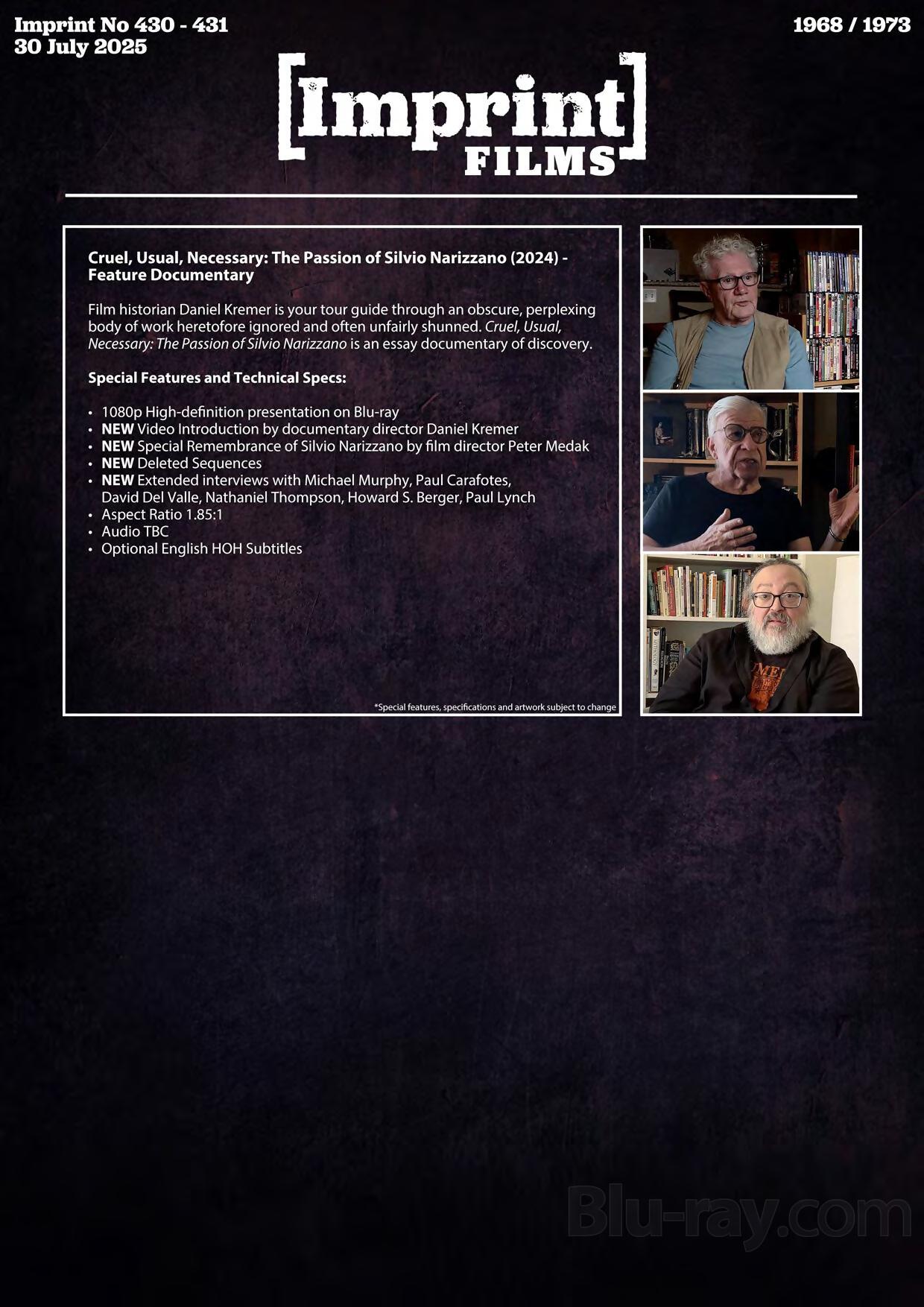 Limited Edition 3-Disc Hardbox with brand NEW Special Features on both films, plus the 2024 feature documentary Cruel, Usual, Necessary: The Passion of Silvio Narizzano.