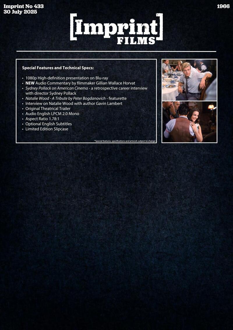 Sydney Pollack directs Natalie Wood, Robert Redford, Kate Reid, and Charles Bronson in this sizzling Hollywood classic, adapted by Francis Ford Coppola from the classic play by Tennessee Williams.