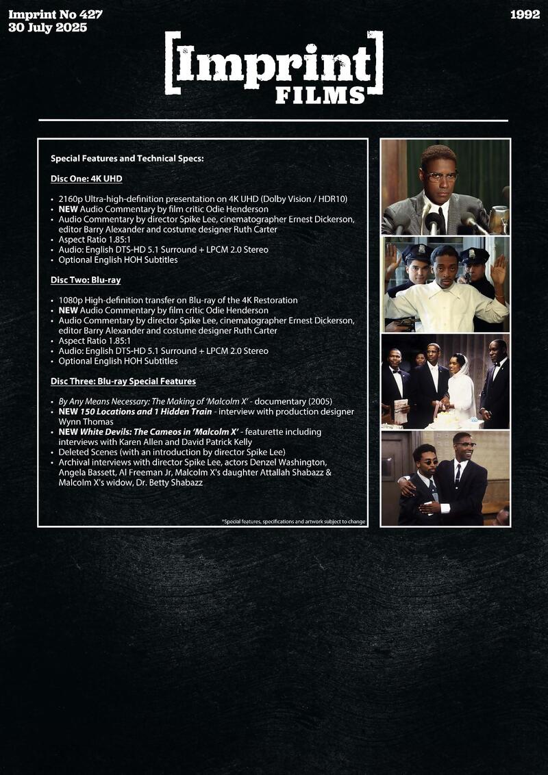 Malcolm X (1992). The three releases are scheduled to arrive on the market on July 30.