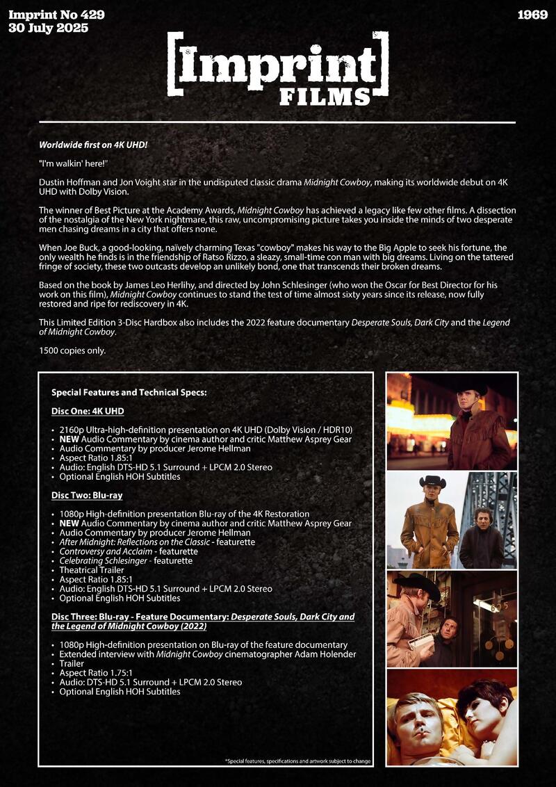 Includes a brand NEW Audio Commentary, and the worldwide Blu-ray debut of 2022 feature documentary Desperate Souls, Dark City and the Legend of Midnight Cowboy.
