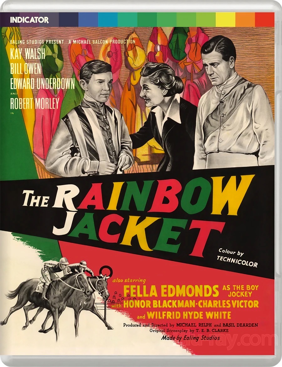 Description: Robert Morley (Hammer Films' The Old Dark House), Kay Walsh (David Lean's Oliver Twist), Bill Owen (The Ship That Died of Shame), and Honor Blackman (Jason and the Argonauts) lead the cast of The Rainbow Jacket, a thrilling exposé of the horse racing world from Ealing Studios.