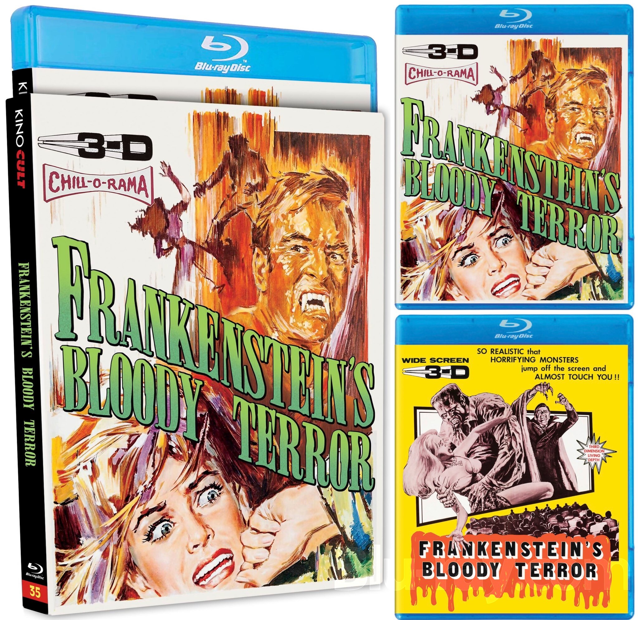 Description: Among the most elusive gems of 1960s Eurohorror, Frankenstein's Bloody Terror (La marca del Hombre Lobo) is a modern gothic 3-D monster mash written and directed by Paul Naschy (The Werewolf Versus the Vampire Woman). Waldemar Daninsky(Naschy) suffers the bite of a werewolf and seeks the aid of a pair of occultists to rid himself of the curse. But Dr. Mikhelov and his wife (Julián Ugarte and Aurora de Alba) are in fact vampires, and Waldemar's only defense against them is to unchain the lycanthrope within. Newly mastered in 4K from 35mm elements of the U.S. release cut of the film (compromised by decomposition), this Kino Cult edition has been meticulously restored by the 3-D Film Archive and is presented in both the stereoscopic (3-D player and monitor required) and anaglyph versions (one pair of red/green glasses provided).