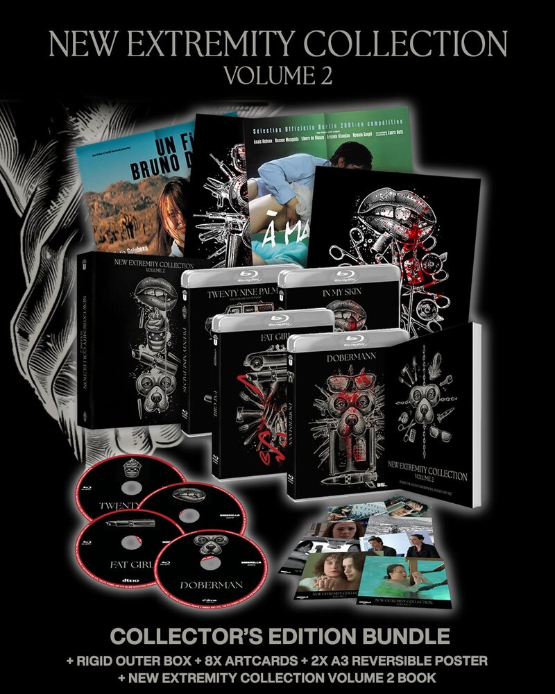 Description: Return to the outskirts of humanity in our NEW EXTREMITY COLLECTION VOLUME 2 featuring Dobermann (1997), Fat Girl (2001), In My Skin (2002), and Twentynine Palms (2003) with hours of NEW video extras. More than just films — these are confrontations. Transgressive, artful, and unforgettable. The NEW EXTREMITY COLLECTION: VOLUME TWO is not for the faint of heart — but for those who dare to look unblinking into the abyss.