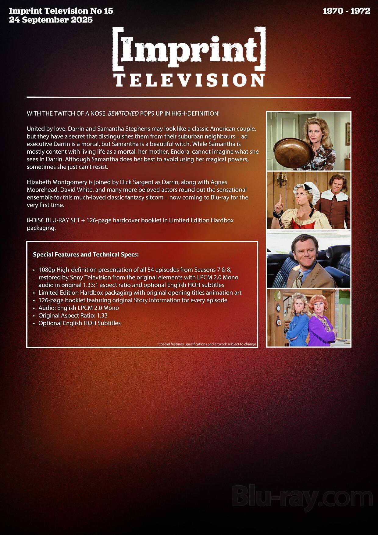 Elizabeth Montgomery is joined by Dick Sargent, Agnes Moorehead, David White, and many more beloved actors, who round out the sensational ensemble for this much-loved classic fantasy sitcom – now coming to Blu-ray for the very first time.