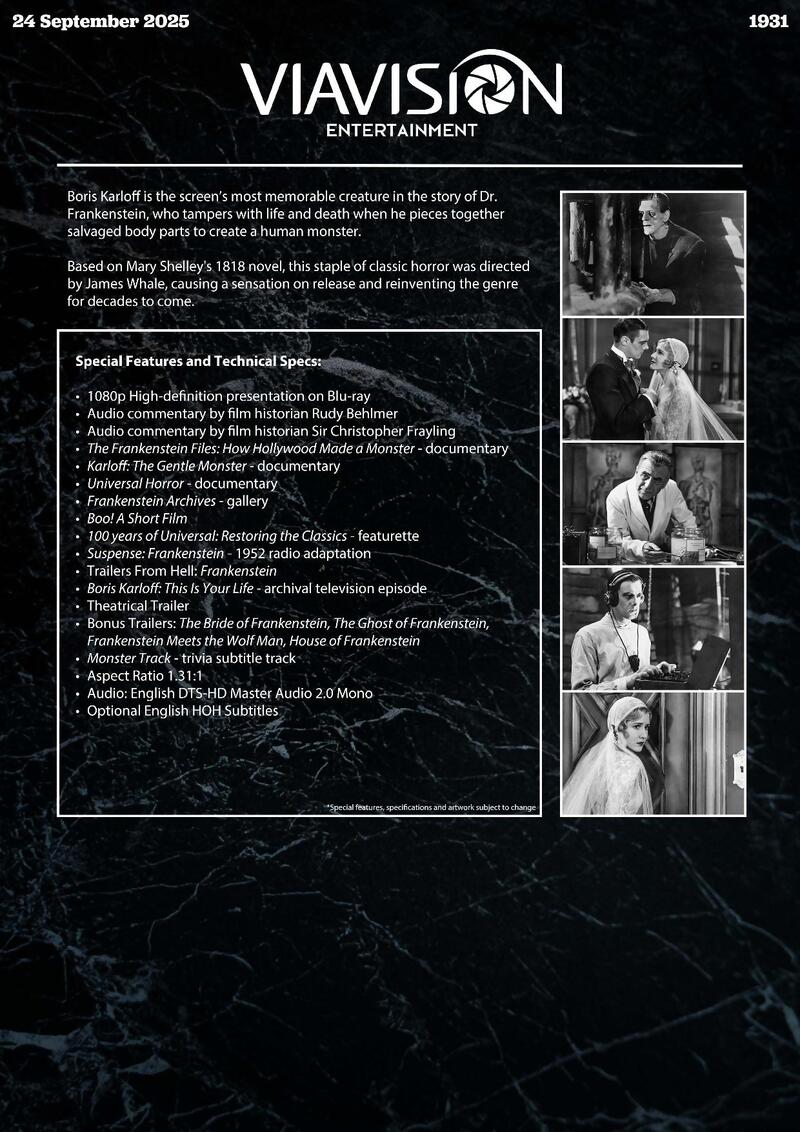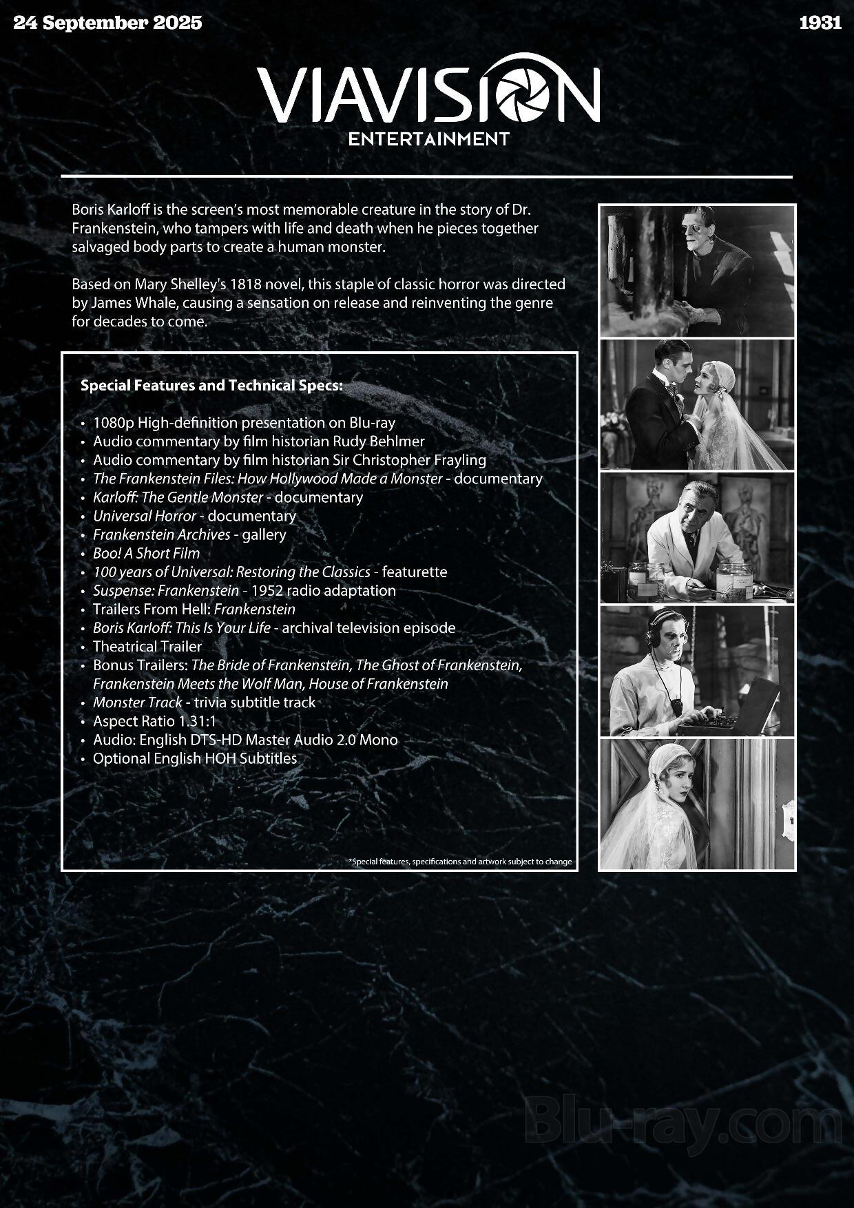 Based on Mary Shelley's 1818 novel and directed by James Whale, this classic horror staple comes alive with a ton of Special Features, including audio commentaries, documentaries, and a featurette.