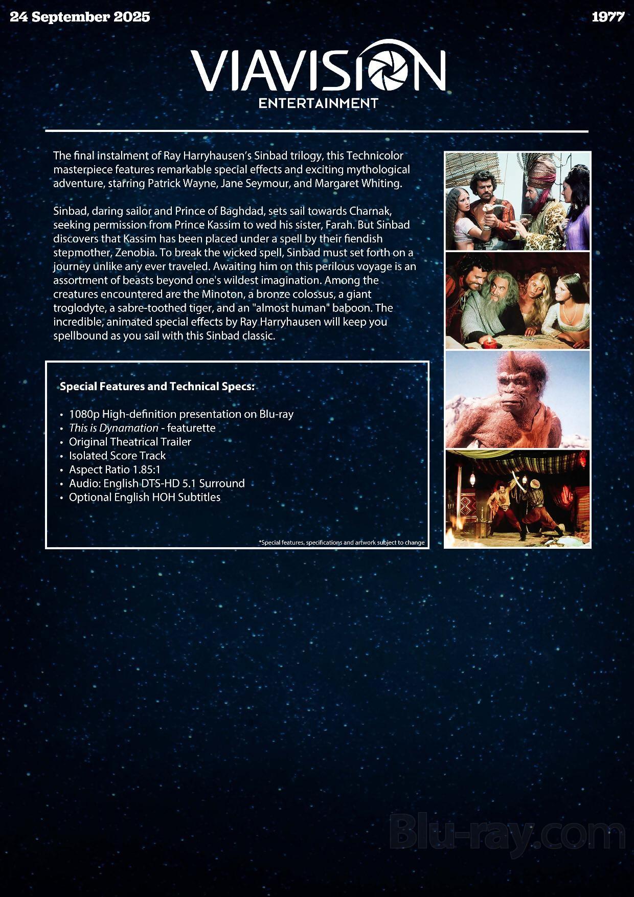 Sinbad and the Eye of the Tiger (1977). The three releases are scheduled to arrive on the market on September 24.